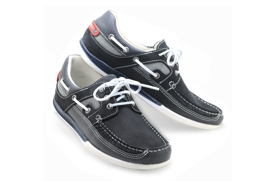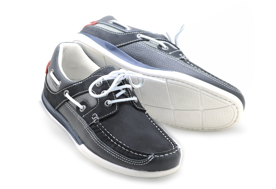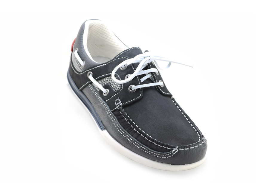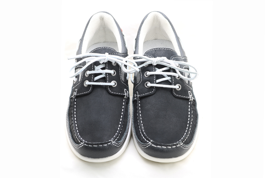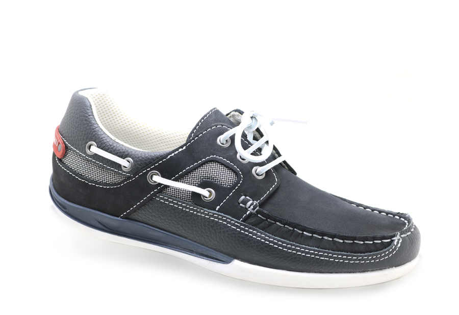 Náutico marino confeccionado en piel curtida y tratada para una mejor resistencia en ambientes húmedos, forrado con tejido técnico resistente a la humedad, transpirable y de secado rápido.